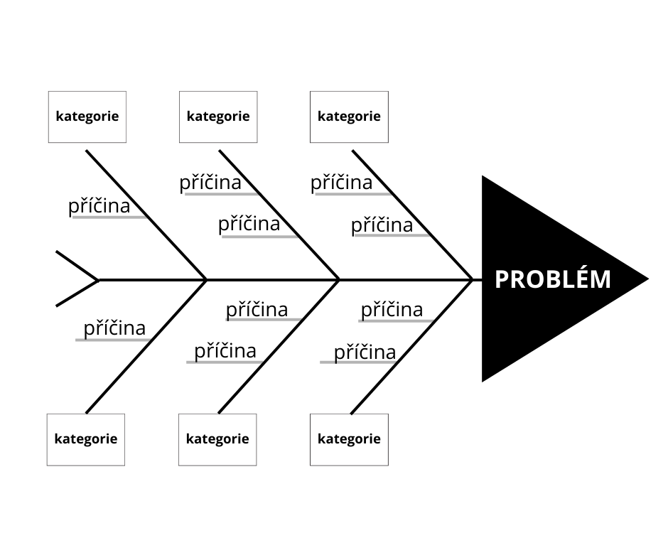 Princip: Vizuální mapa příčin, které vedou k problému.